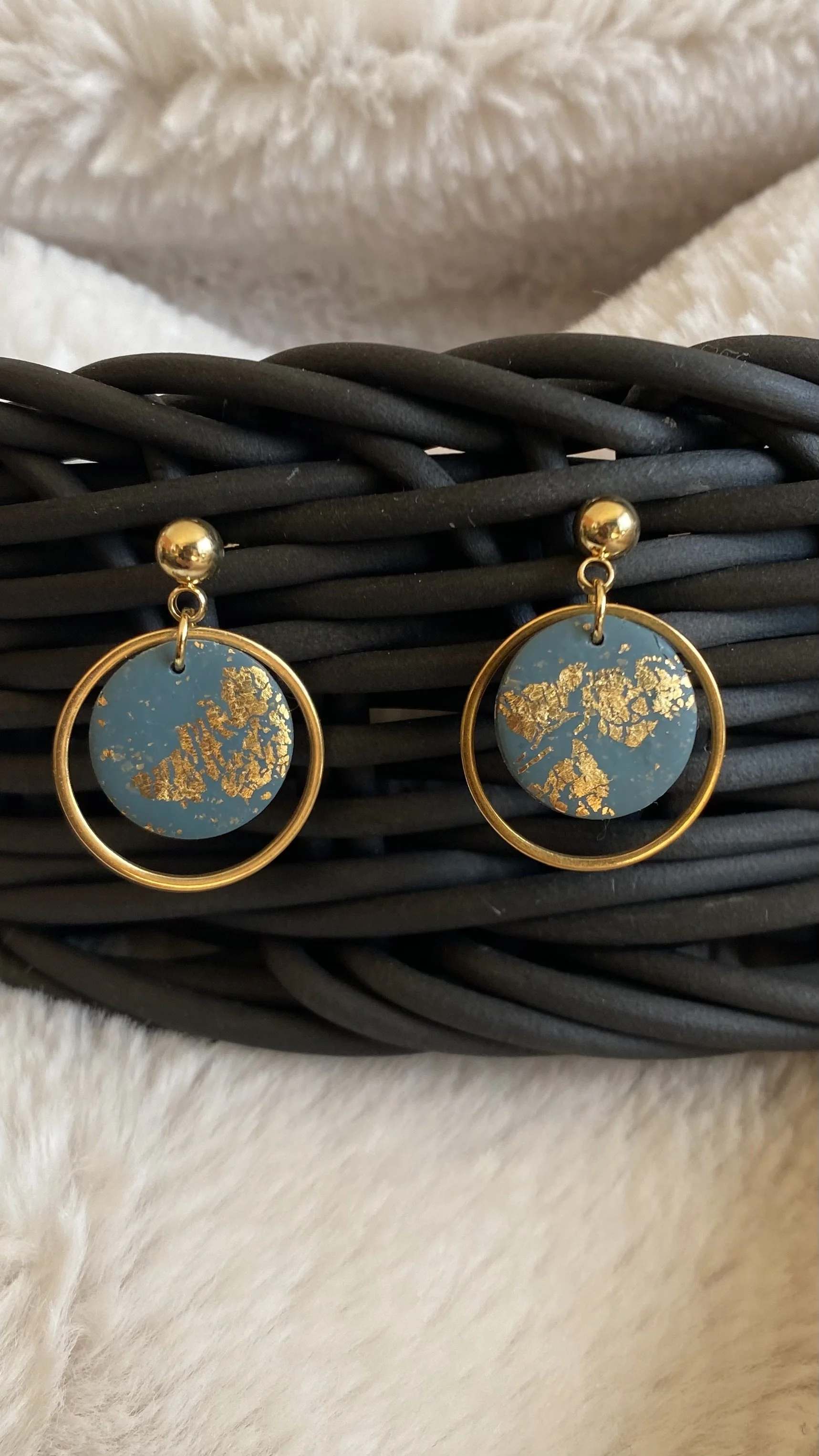 💎 Matériaux : pâte polymère, feuille d’or, acier inoxydable doré (hypoallergénique et durable)